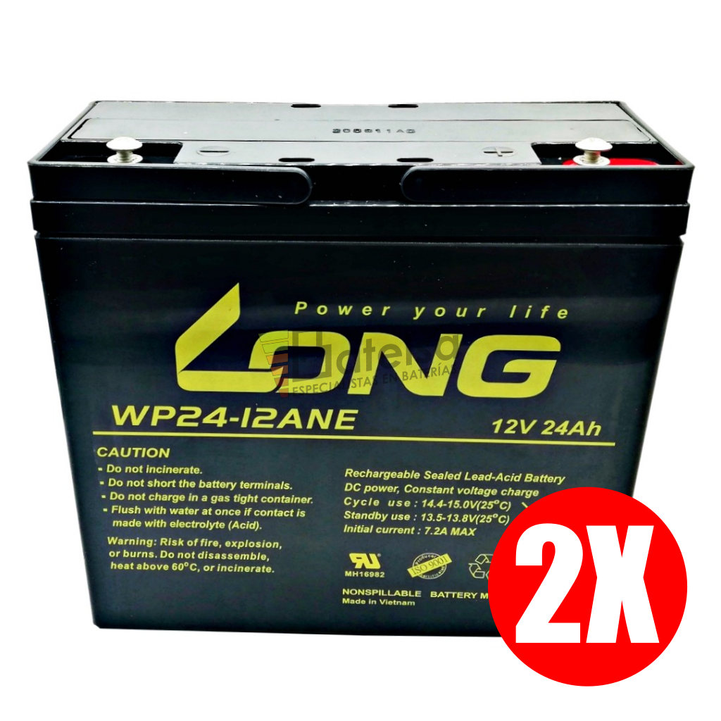 Pack de 2 Baterías Long WP24-12ANE 12 Voltios 24 Amperios