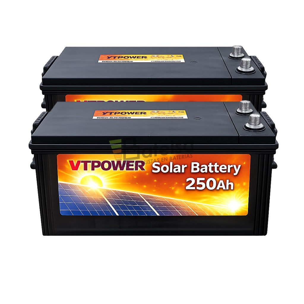 CONJUNTO DE 2 bateriaS vt power vt-250 12 voltios 250 amperios sin mantenimiento