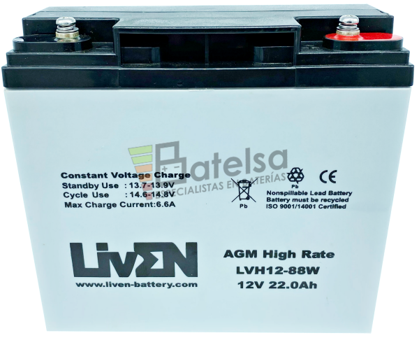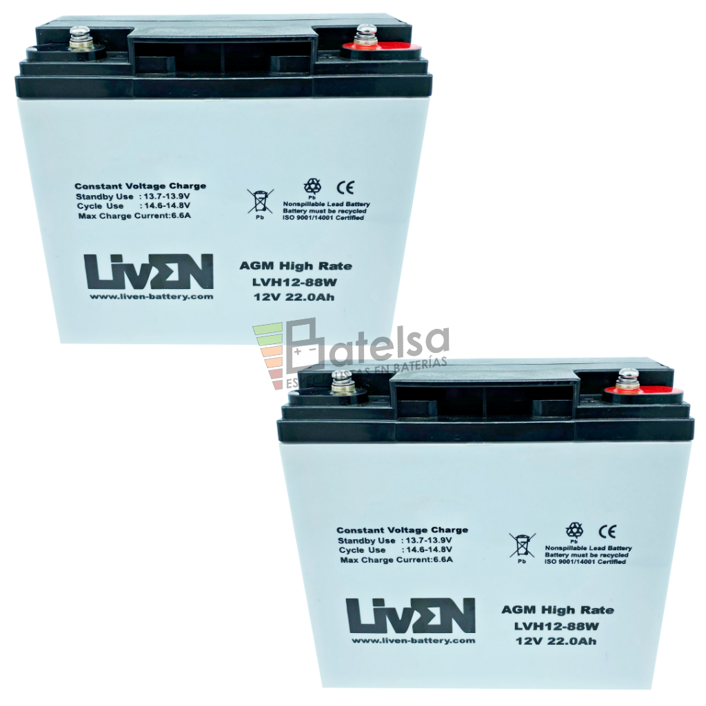 kit compuesto de 2 baterías Liven Battery LVH12-88 12 Voltios 22 Amperios Características: La batería