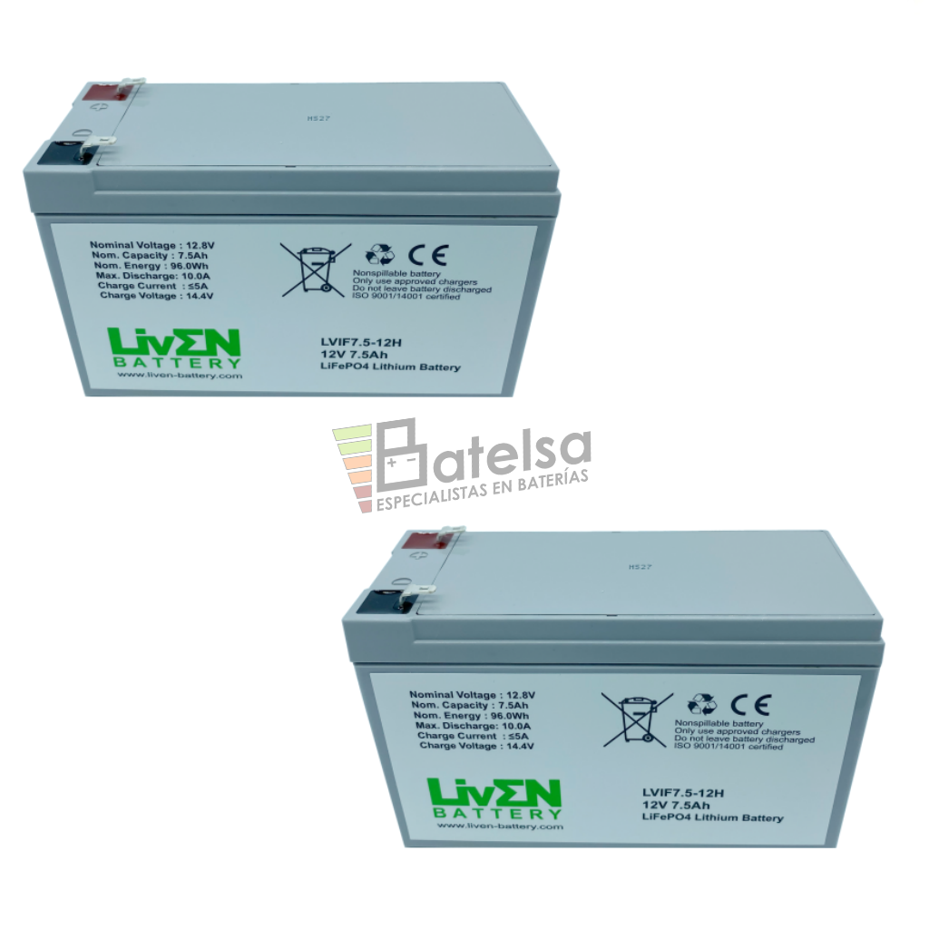 Pack de 2 Baterías de Litio 12 Voltios 7,5 Amperios LVIF7.5-12 LiFePO4