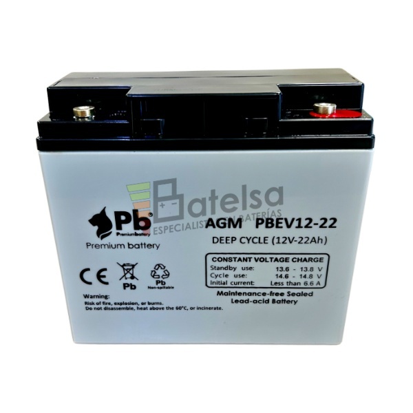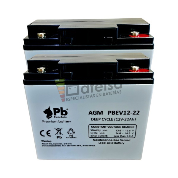 Conjunto de 2 baterías ciclo Profundo AGM 12 Voltios 22 Amperios PBEV12-22