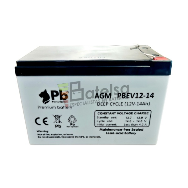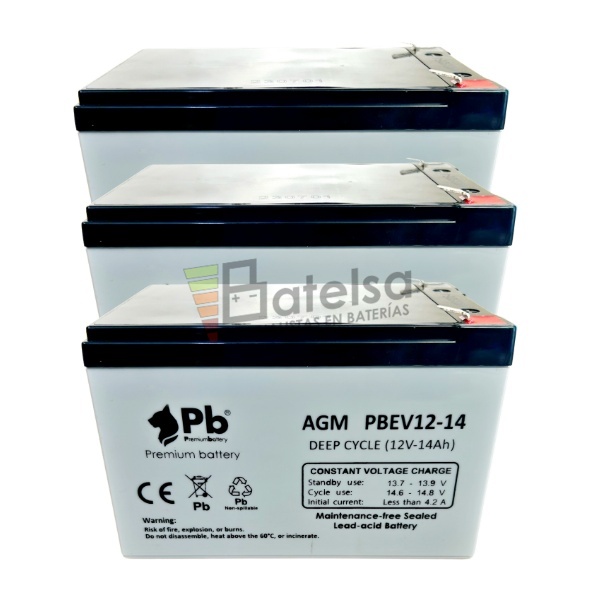 Conjunto de 3 baterías ciclo Profundo AGM 12 Voltios 14 Amperios PBEV12-14