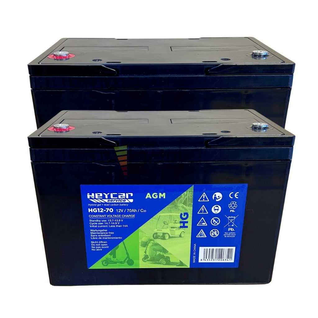 Conjunto de 2 baterías Deep Cycle 12 Voltios 70 Amperios HG12-70 AGM Carbono Gel.