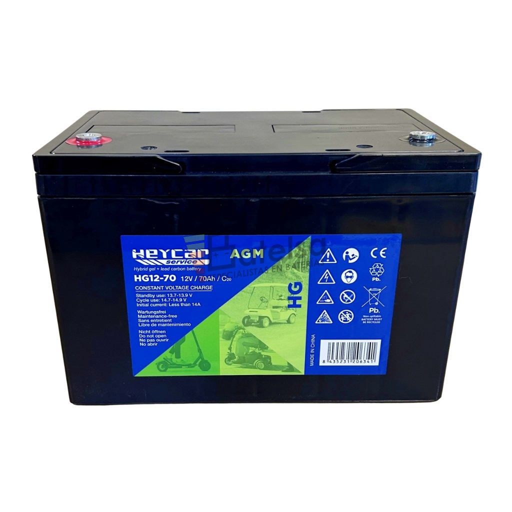 - 2 Baterías Heycar HG12-70 12 Voltios 70 Amperios Deep Cycle