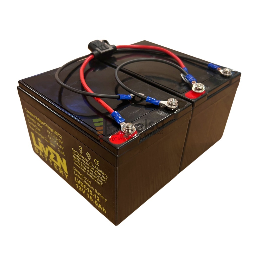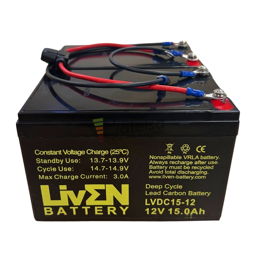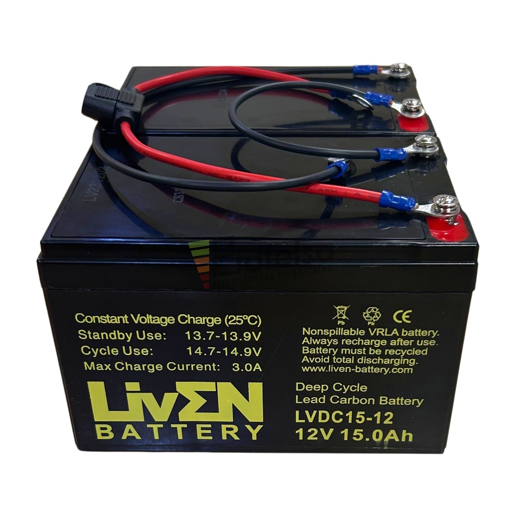 Conjunto de 2 baterías LVDC15-12 12 Voltios 15 Amperios Deep Cycle Liven Battery conexión por tornillo métrica 5.