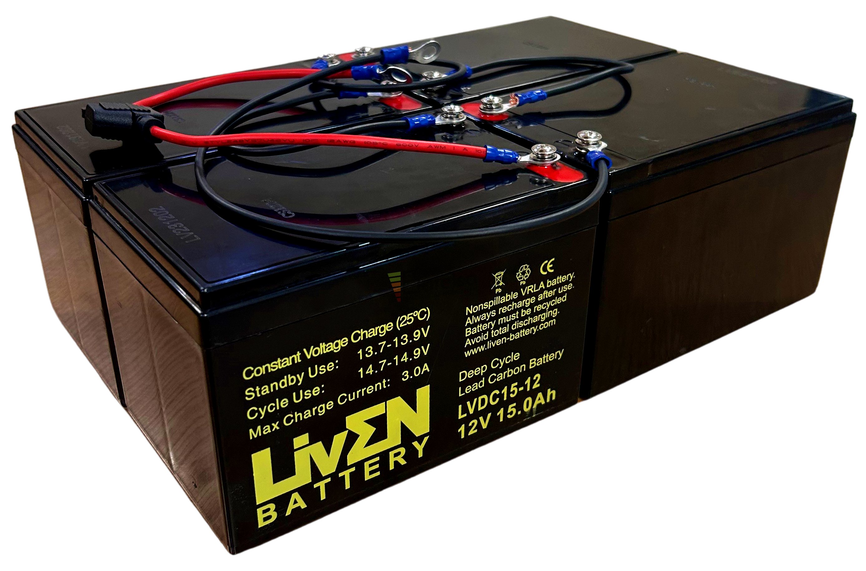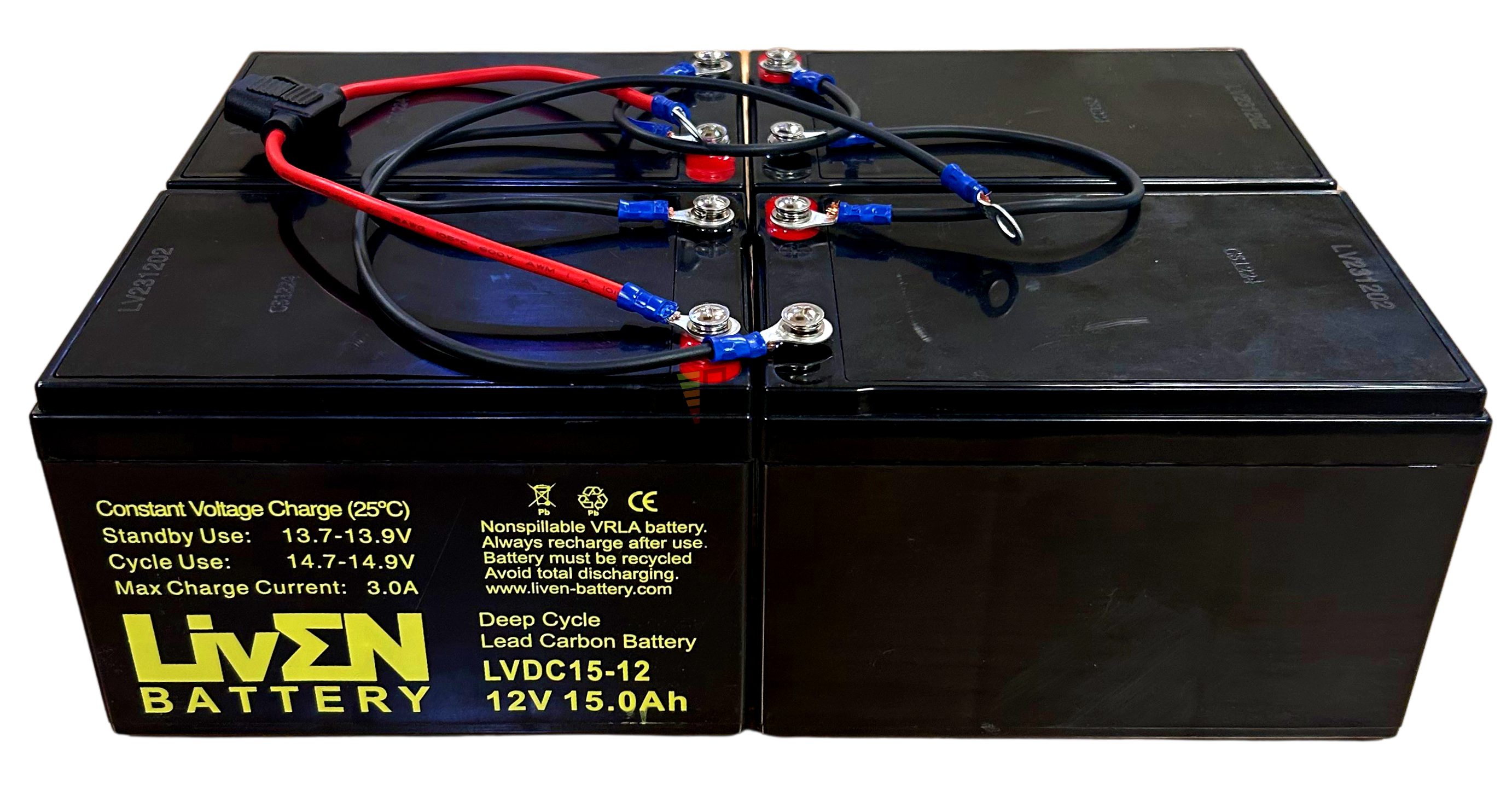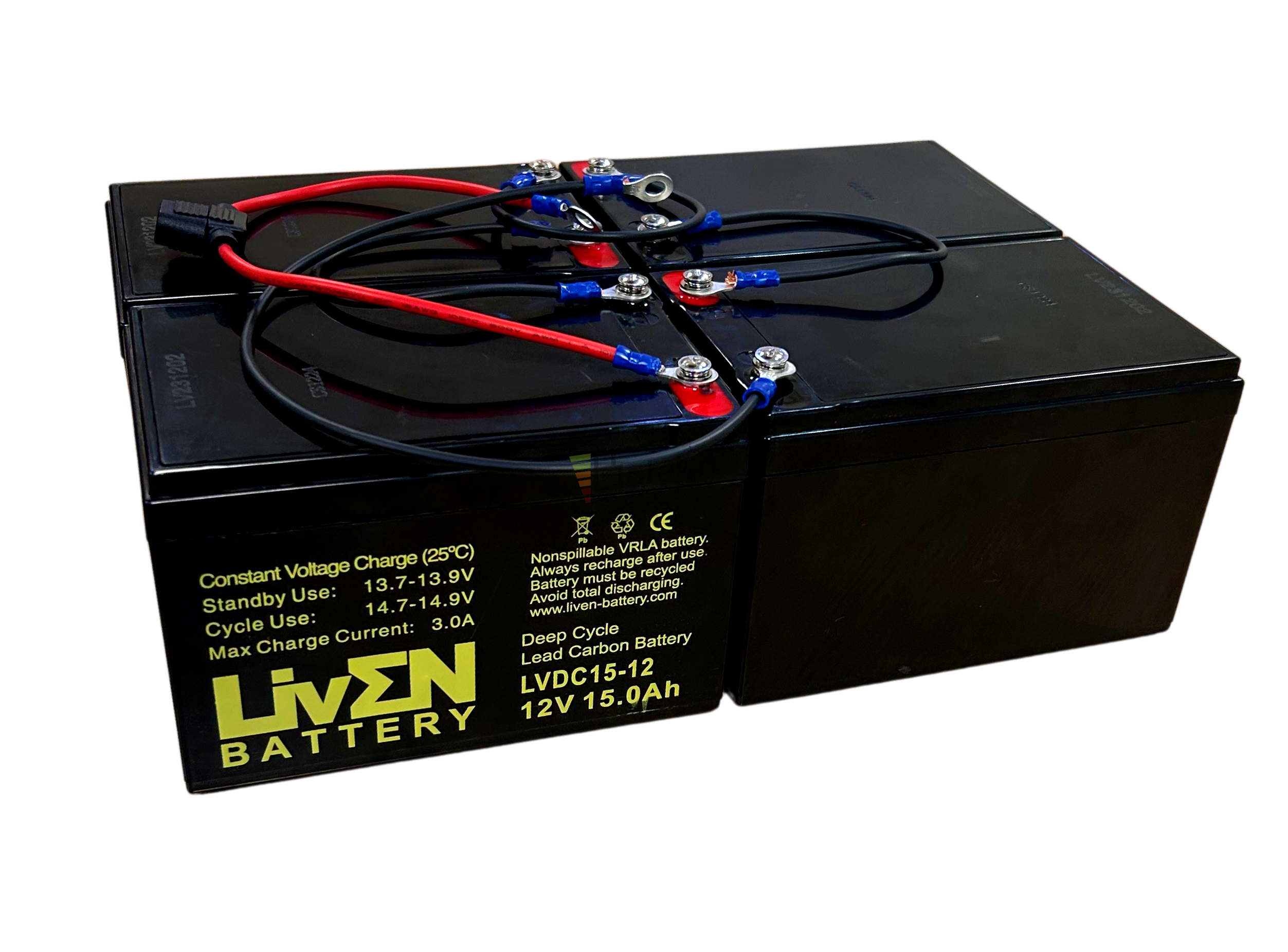 Conjunto de 4 baterías LVDC15-12 12 Voltios 15 Amperios Deep Cycle Liven Battery conexión por tornillo métrica 5.