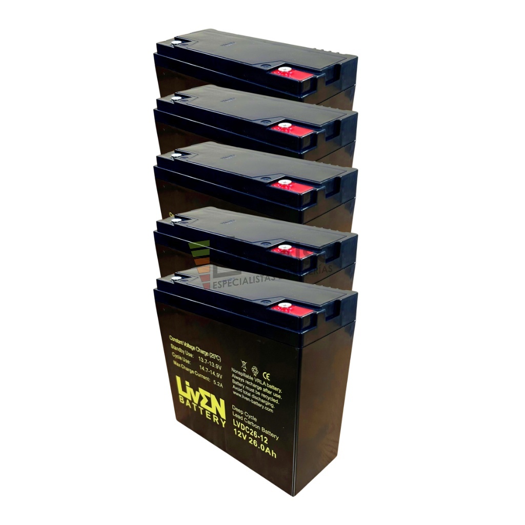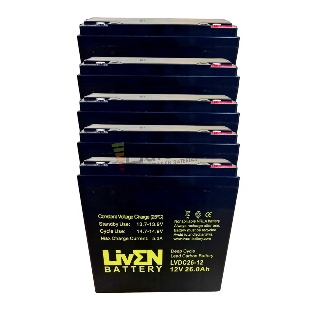 • 5 Baterías Deep Cycle Liven Battery LVDC26-12
