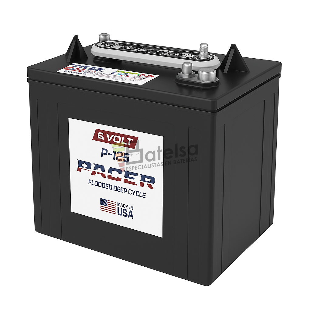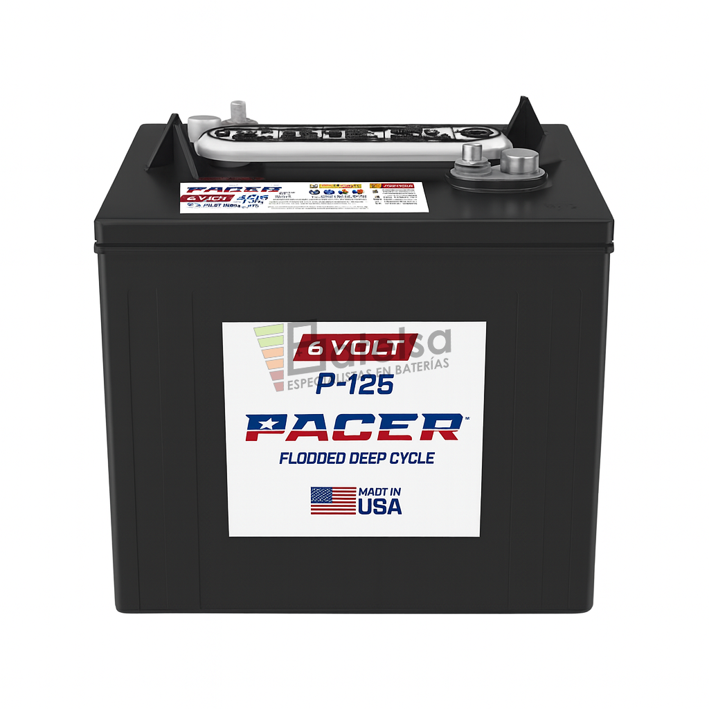 1 batería Pacer P-125 6 V 235 Ah lista para instalación y uso inmediato en aplicaciones solares, industriales o de tracción.