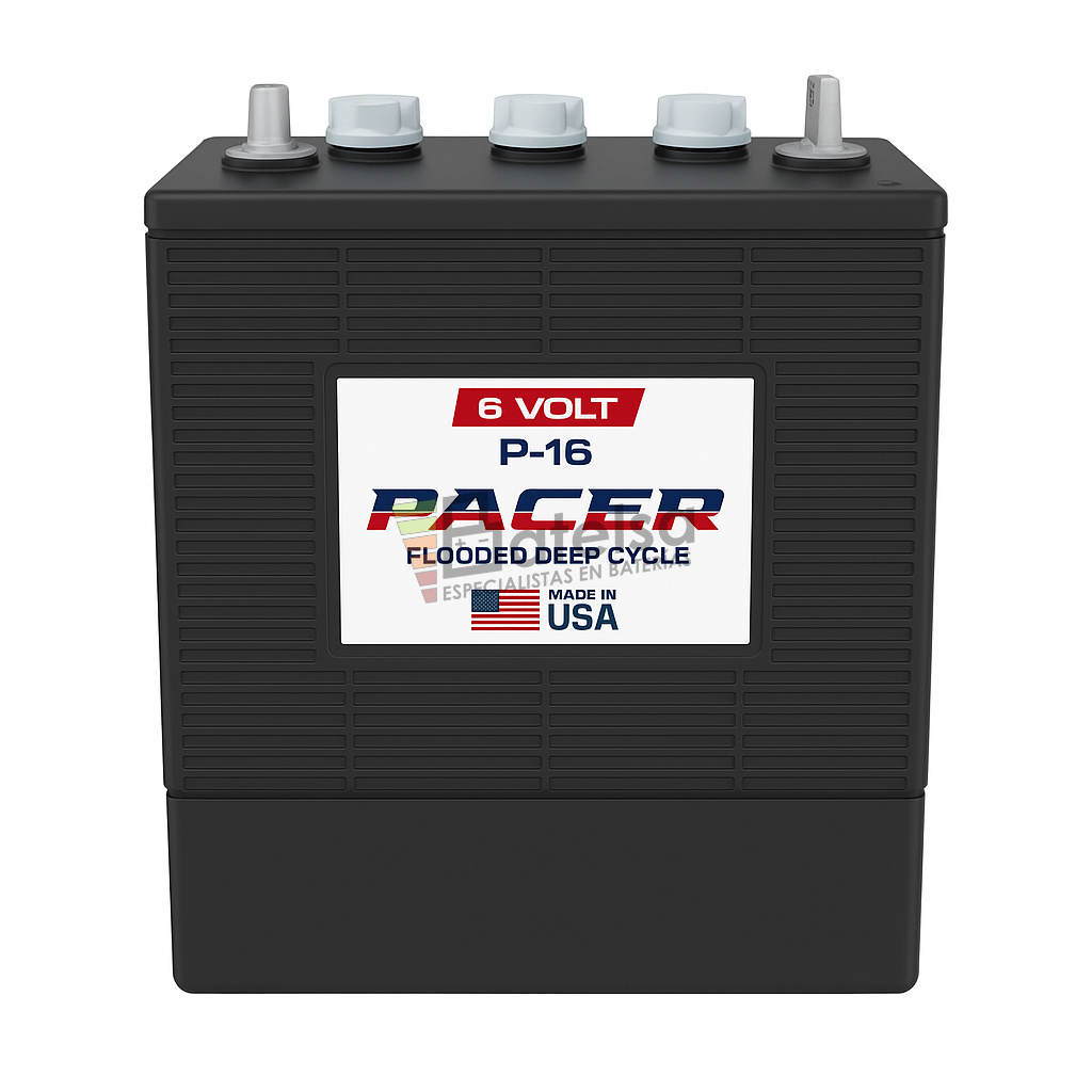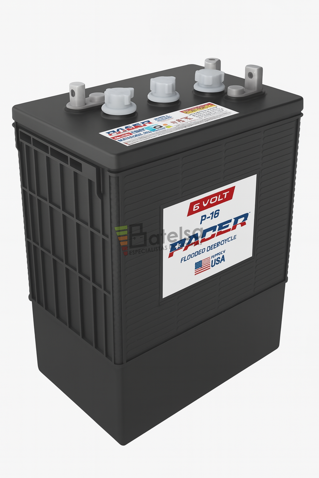 1 batería Pacer P-16 6 V 370 Ah, lista para uso inmediato en sistemas de elevado consumo o respaldo crítico.