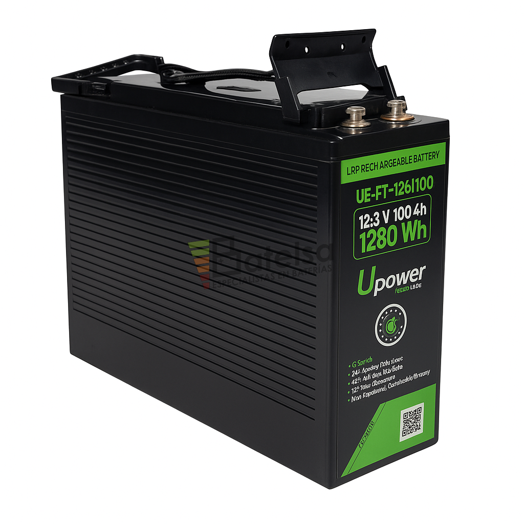 Batería UPower Litio Frontal UE-FT-12Li100, 12,8 Voltios 100 Amperios LiFePO4 (Serie UE-FT)