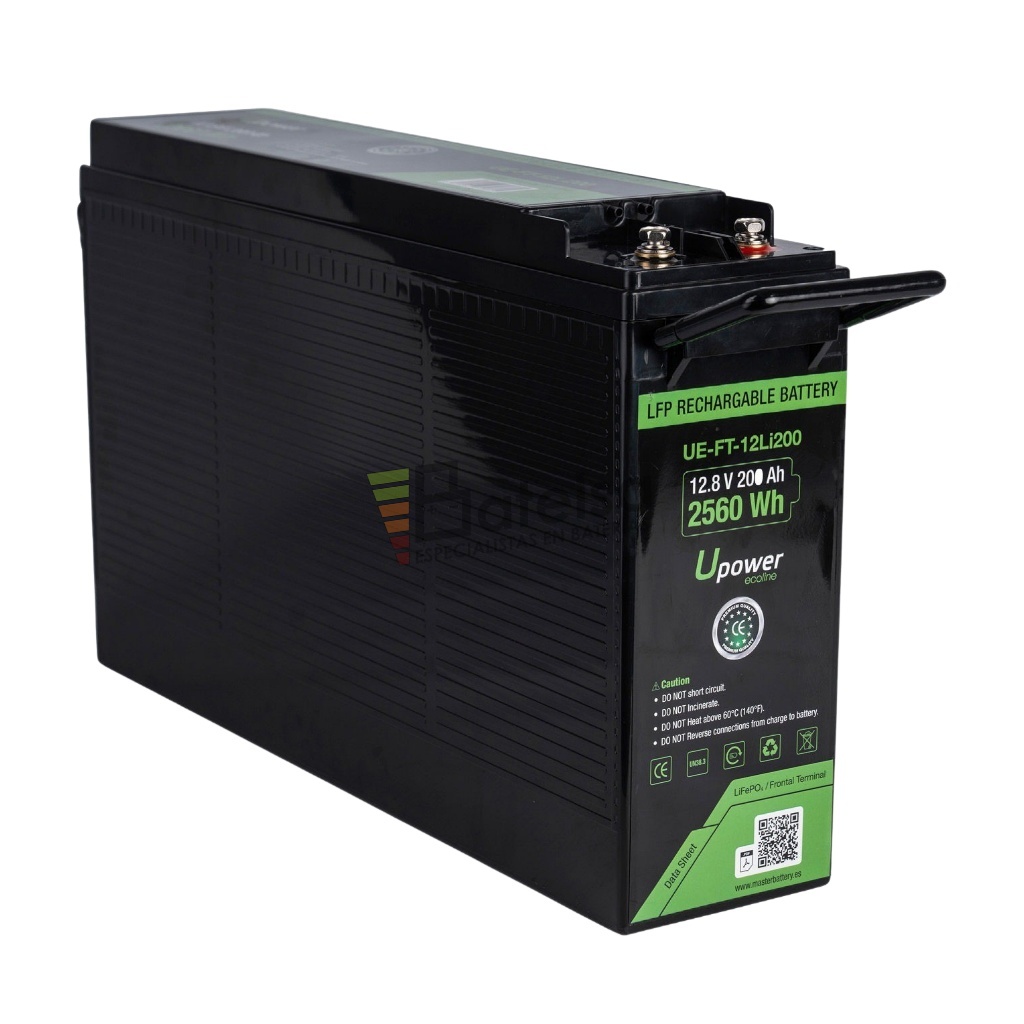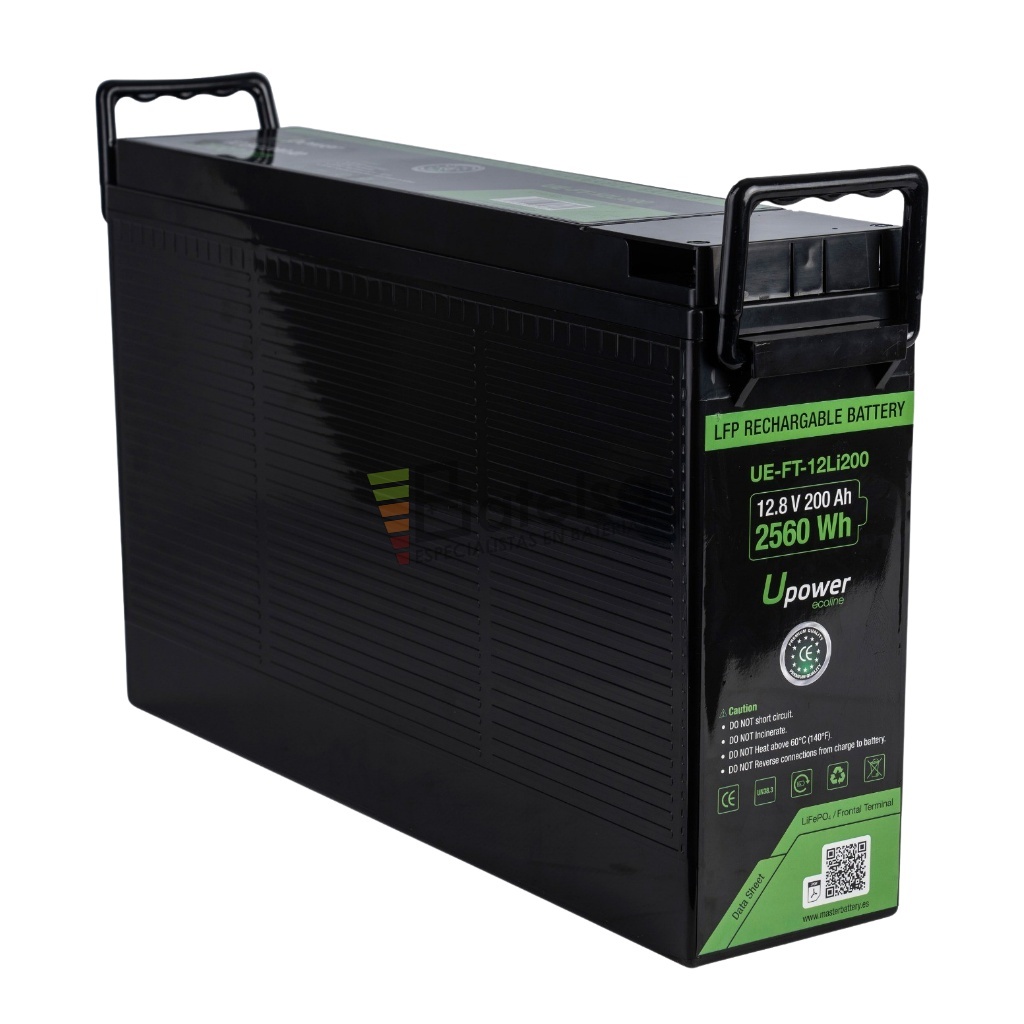 Batería litio frontal UPower UE-FT-12Li200, 12,8 Voltios 200 Amperios LiFePO4 (Serie UE-FT)