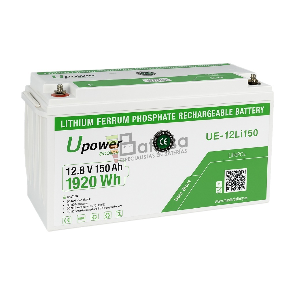 La UPower UE-12Li150 es una batería de litio-ferrofosfato (LiFePO4) de alta capacidad, diseñada para sustituir a las baterías de plomo-ácido tradicionales ofreciendo mayor densidad energética, vida útil prolongada y máxima seguridad. Su BMS (Battery Management System) integrado protege la batería frente a sobrecarga, sobredescarga, cortocircuitos y temperaturas extremas, garantizando un rendimiento estable y duradero. Con una capacidad nominal de 150 Ah a 12,8 V (equivalente a 1920 Wh), combina potencia, ligereza y eficiencia, ideal para sistemas solares, movilidad eléctrica, UPS y aplicaciones industriales exigentes.