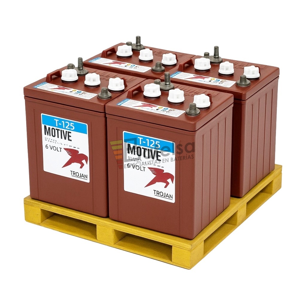 Conjunto de 4 baterías Trojan 6 Voltios 266 Amperios Trojan T125 para gruas elevadoras. Desde su fundación en 1925