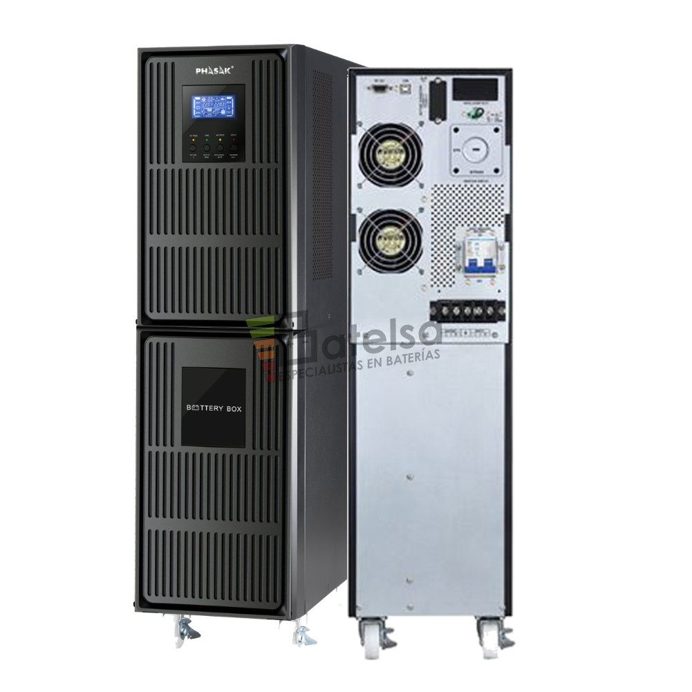 - Doble conversión real: garantiza aislamiento total de la red y alimentación continua sin interrupción.