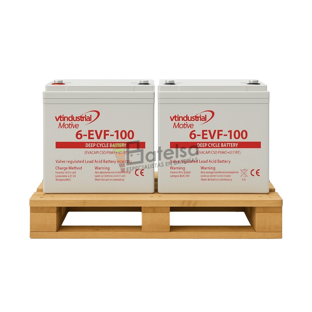 Conjunto de 2 baterías para fregadoras y máquinas de limpieza, VT Motive 6-EVF-100 especial tracción eléctrica, 12 voltios 100 Amperios GEL Ciclo Profundo .
