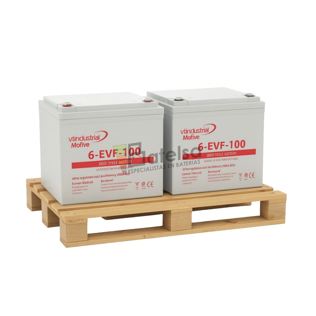 Conjunto de 2 baterías para transpaletas y apiladores, VT Motive 6-EVF-100 especial tracción eléctrica, 12 voltios 100 Amperios GEL Ciclo Profundo .
