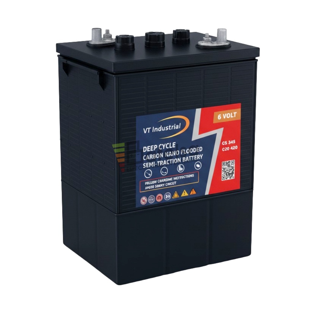 Conjunto de 2 baterías de 6 Voltios 420 Amperios C20 VT MOTIVE Deep Cycle Carbon Nano Flooded CNFL06L16HC, mejor rendimiento frente a las tradicionales permitiendo la carga de oportunidad para proporcionar esos tiempos de funcionamiento extra cuando los necesite y su recarga es hasta 2 veces más rápida.