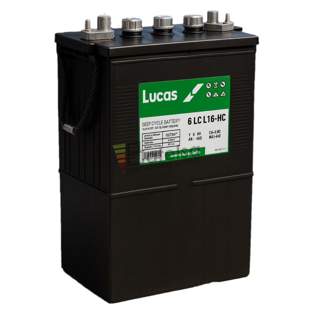 La batería Lucas 6 LC L16-HC forma parte de la serie industrial LC y está diseñada para aplicaciones de tracción de máxima exigencia, ofreciendo una gran capacidad energética, elevada resistencia estructural y una vida útil prolongada en ciclos profundos intensivos.