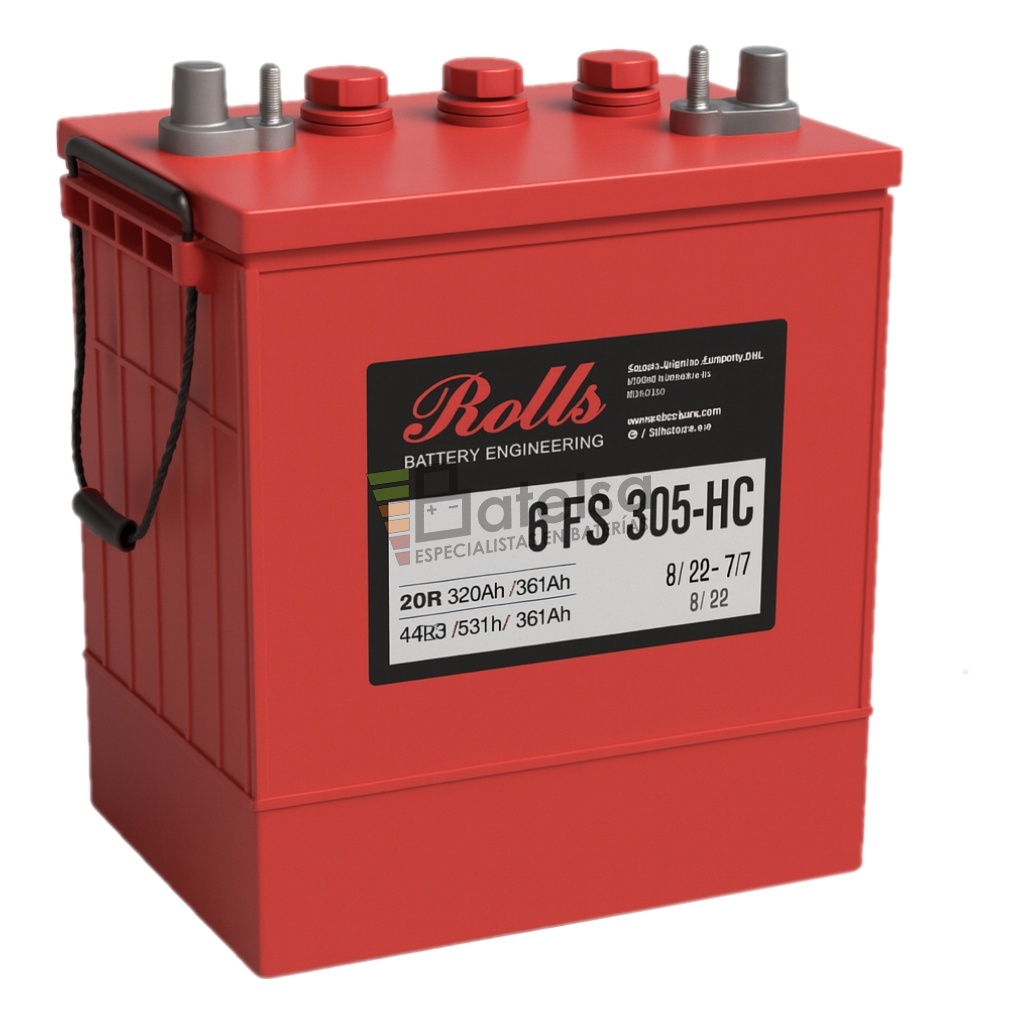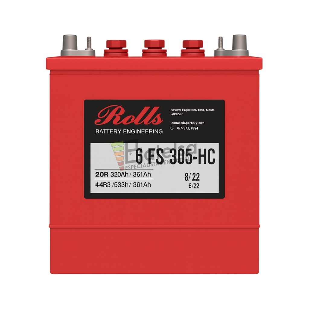 La batería Rolls 6 FS 305-HC pertenece a la serie FS de baterías de plomo-ácido inundadas (Flooded Deep Cycle), diseñada para aplicaciones de tracción y almacenamiento energético donde se requiere una alta capacidad, gran robustez mecánica y un excelente comportamiento en ciclos profundos.