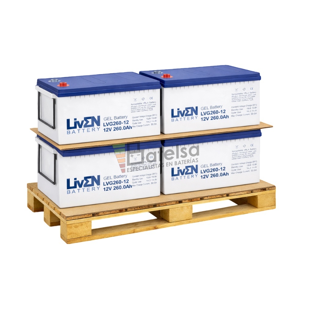 Conjunto de 4 baterías de GEL ciclo profundo LVG260-12 Liven de 12 Voltios 260 Amperios.