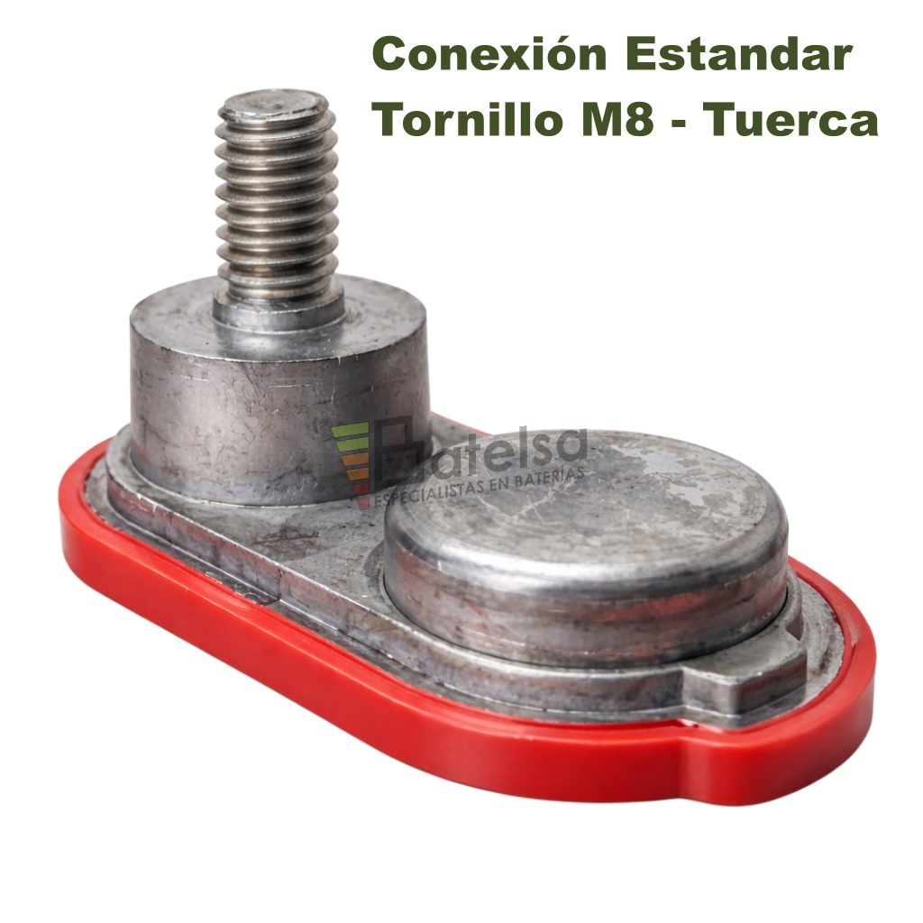 - Terminal tipo UTL con tornillería de acero inoxidable (tuerca K-Lock) para una conexión segura y duradera.