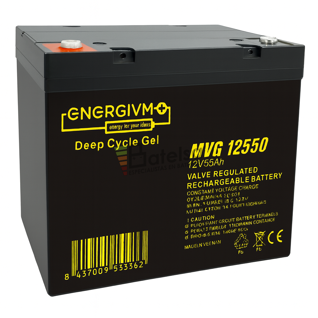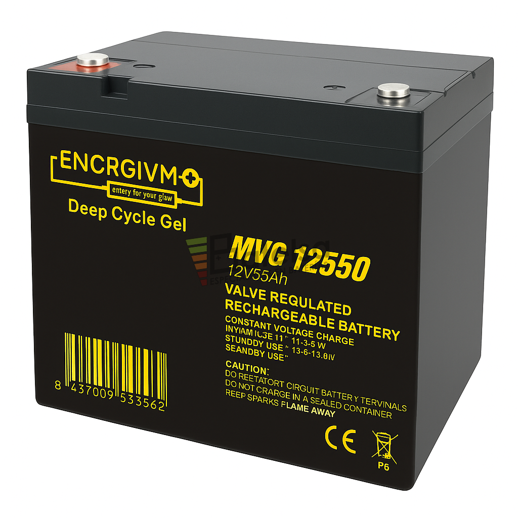 Batería MVG 12550, 12 V 55 Ah GEL (VRLA) – Energía de Ciclo Profundo para Aplicaciones Profesionales