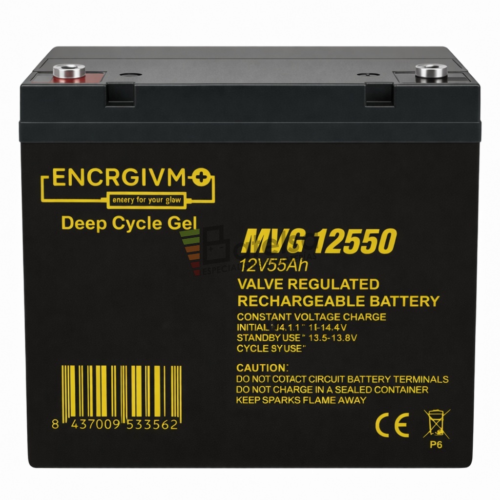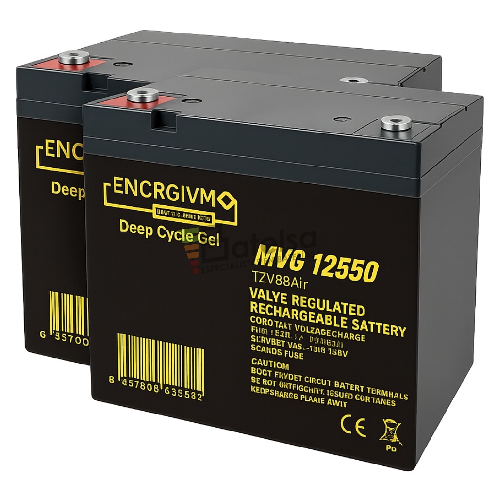 2 Baterías MVG 12550, 12 V 55 Ah GEL (VRLA) – Energía de Ciclo Profundo para Aplicaciones Profesionales