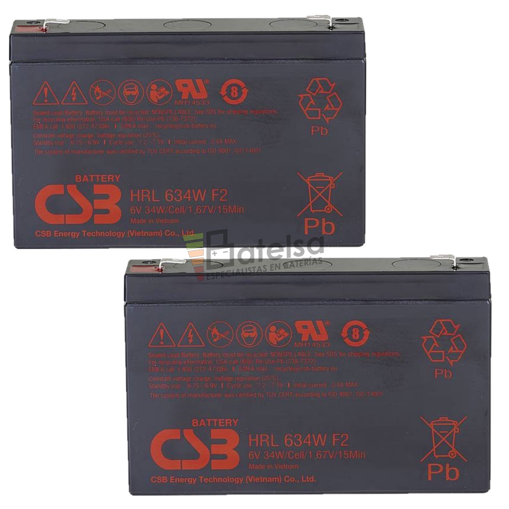 Pack 2 baterías 6 Voltios 9 Amperios CSB HRL634 WF2 Pack 2 baterías 6 Voltios 9 Amperios CSB HRL634 WF2 Pack 2 baterías 6 Voltios 9 Amperios CSB HRL634 WF2