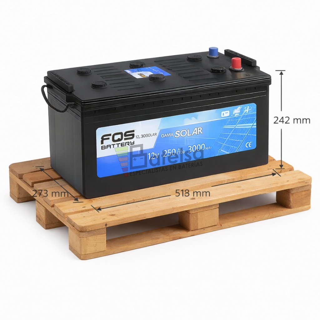 Conjunto de 4 baterías instalación solar FQS12-250 de 12 Voltios 250 Amperios C100 con mantenimiento para aplicaciones solares