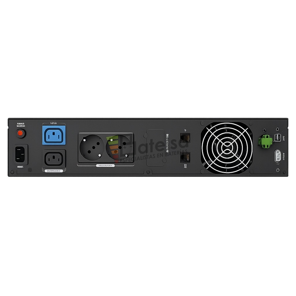 • Conectividad avanzada: incluye puertos USB tipo B, RS-232, RJ45 y opciones SNMP para una gestión remota y monitoreo en tiempo real.