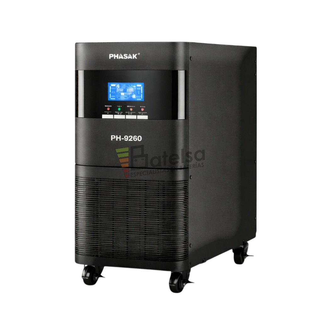 El PH 9260 es un SAI online de doble conversión real monofásica diseñado para entornos exigentes que requieren respaldo de gran potencia. Con una capacidad de 6000 VA / 5400 W, ofrece protección fiable para centros de datos, racks de red, instalaciones críticas o sistemas industriales frente a cortes, picos de tensión y fluctuaciones eléctricas.