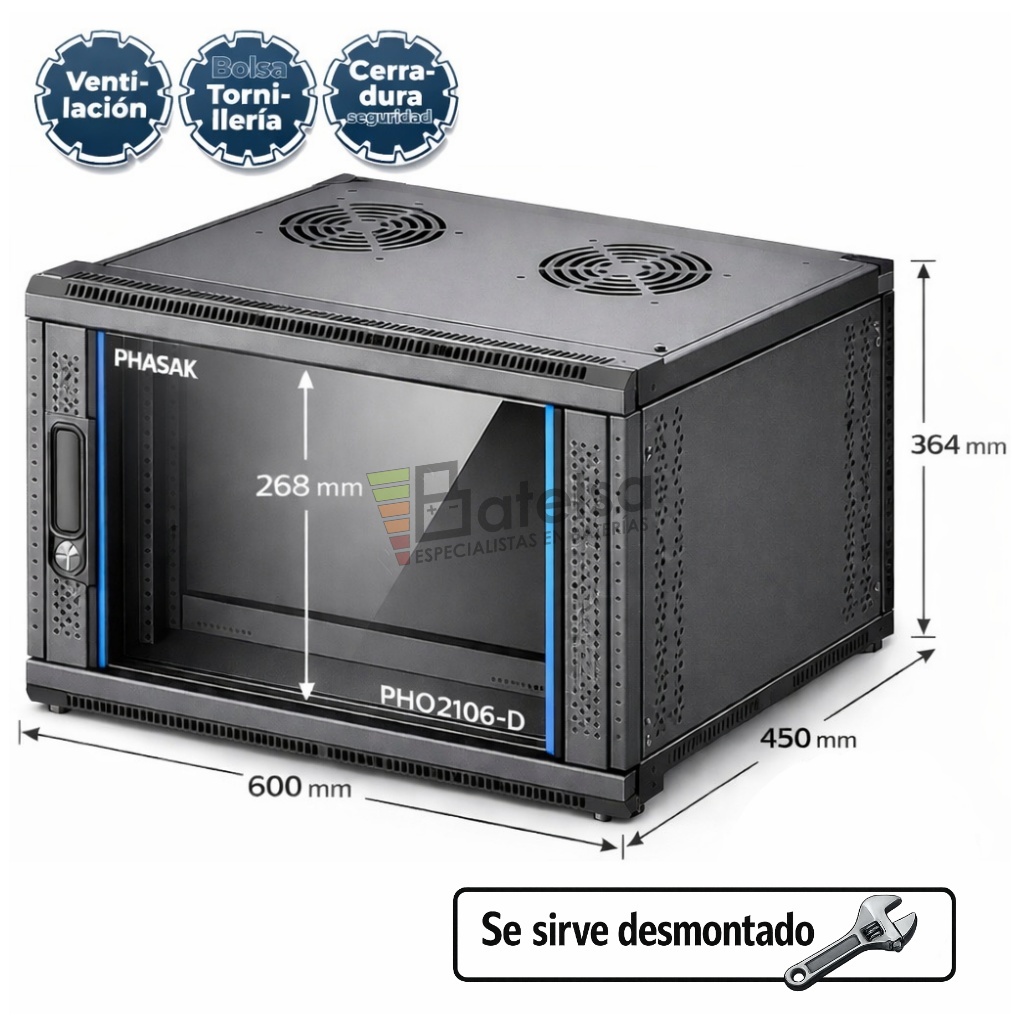 Rack Mural 6U 19P 600x450 mm Phasak Pro PHO 2106-D Armario para Switch Router y Patch Panel