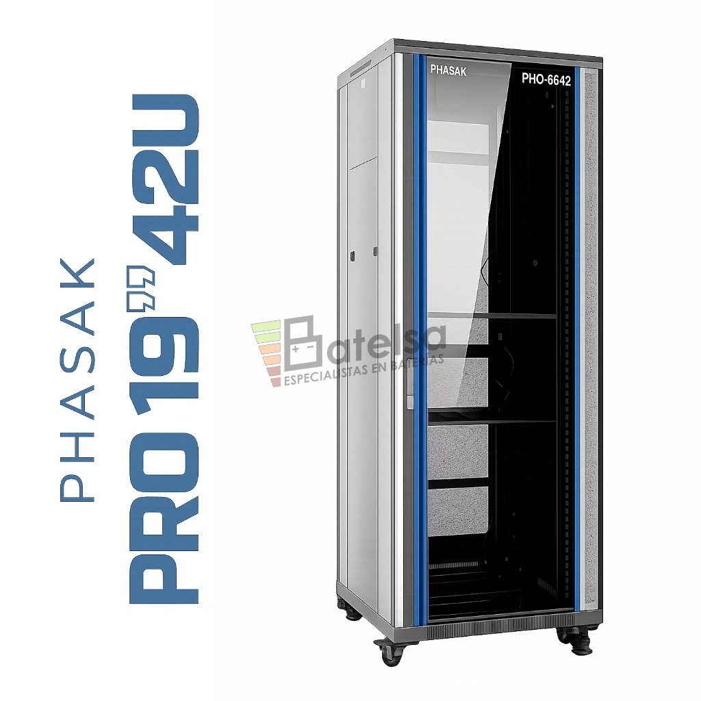 Armario Rack 19″ PHASAK Pro 42U de altura, Anco 600 x Fondo 600 mm.