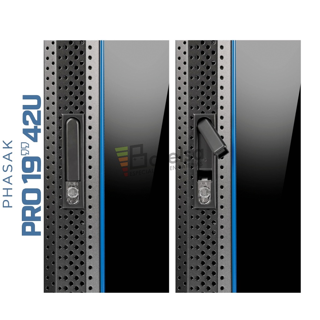 Fabricados en acero laminado en frío de alta calidad, los armarios Rack PHASAK Pro destacan por su estructura sólida, resistente y completamente modular, lo que facilita su adaptación a diferentes necesidades técnicas. Su diseño profesional no solo asegura una excelente estabilidad y durabilidad, sino que también optimiza la gestión del cableado y el acceso a los dispositivos.