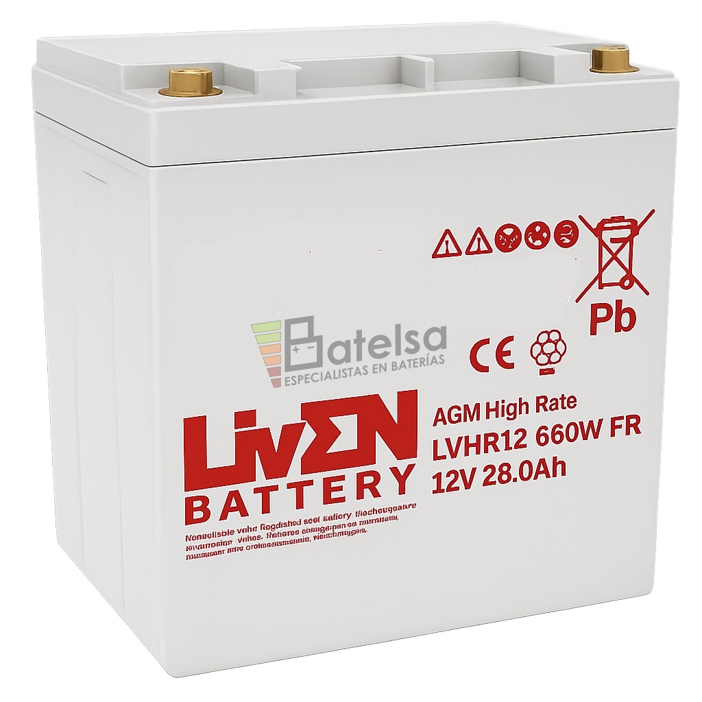 Batería LVHR12-660W VRLA AGM de Alto Rendimiento, 12 Voltios 28 Amperios – Serie LVHR para Aplicaciones de Alta Descarga