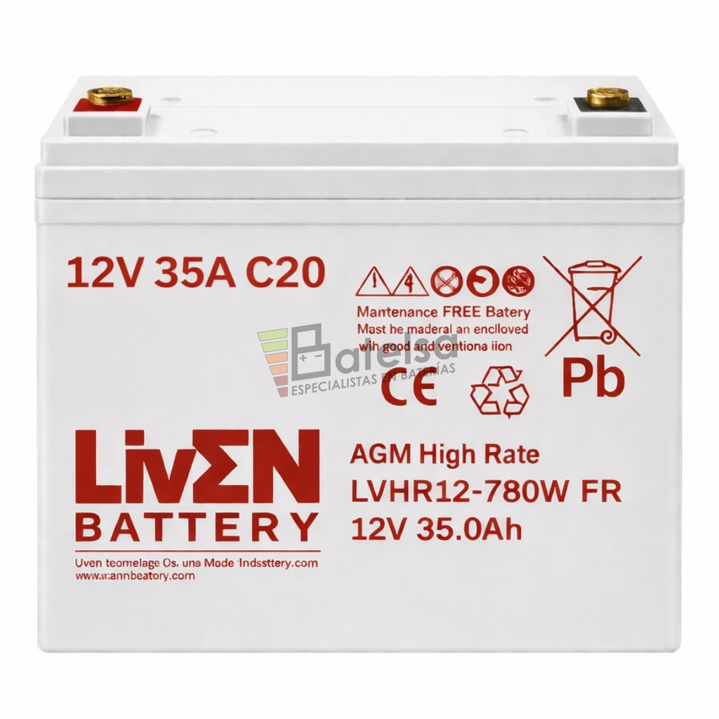 Batería LVHR12-780W VRLA AGM de Alto Rendimiento, 12 Voltios 35 Amperios – Serie LVHR para Aplicaciones de Alta Descarga