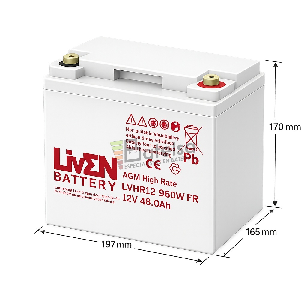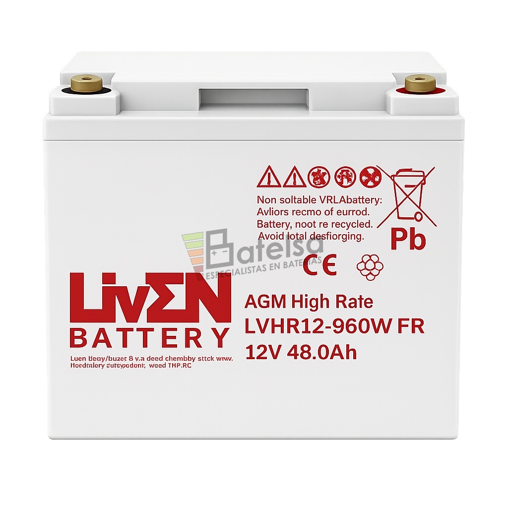 Batería LVHR12-960W VRLA AGM de Alto Rendimiento, 12 Voltios 48 Amperios – Serie LVHR para Aplicaciones de Alta Descarga