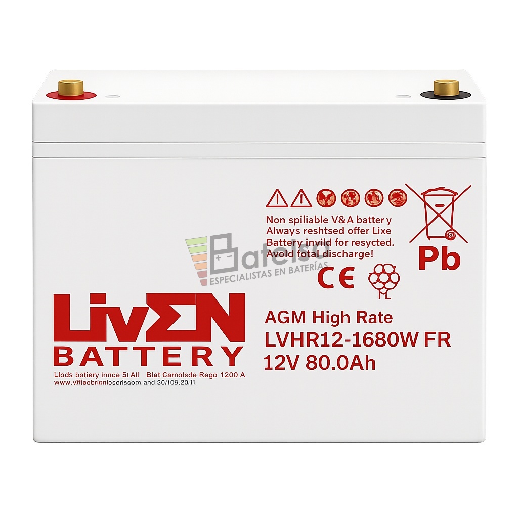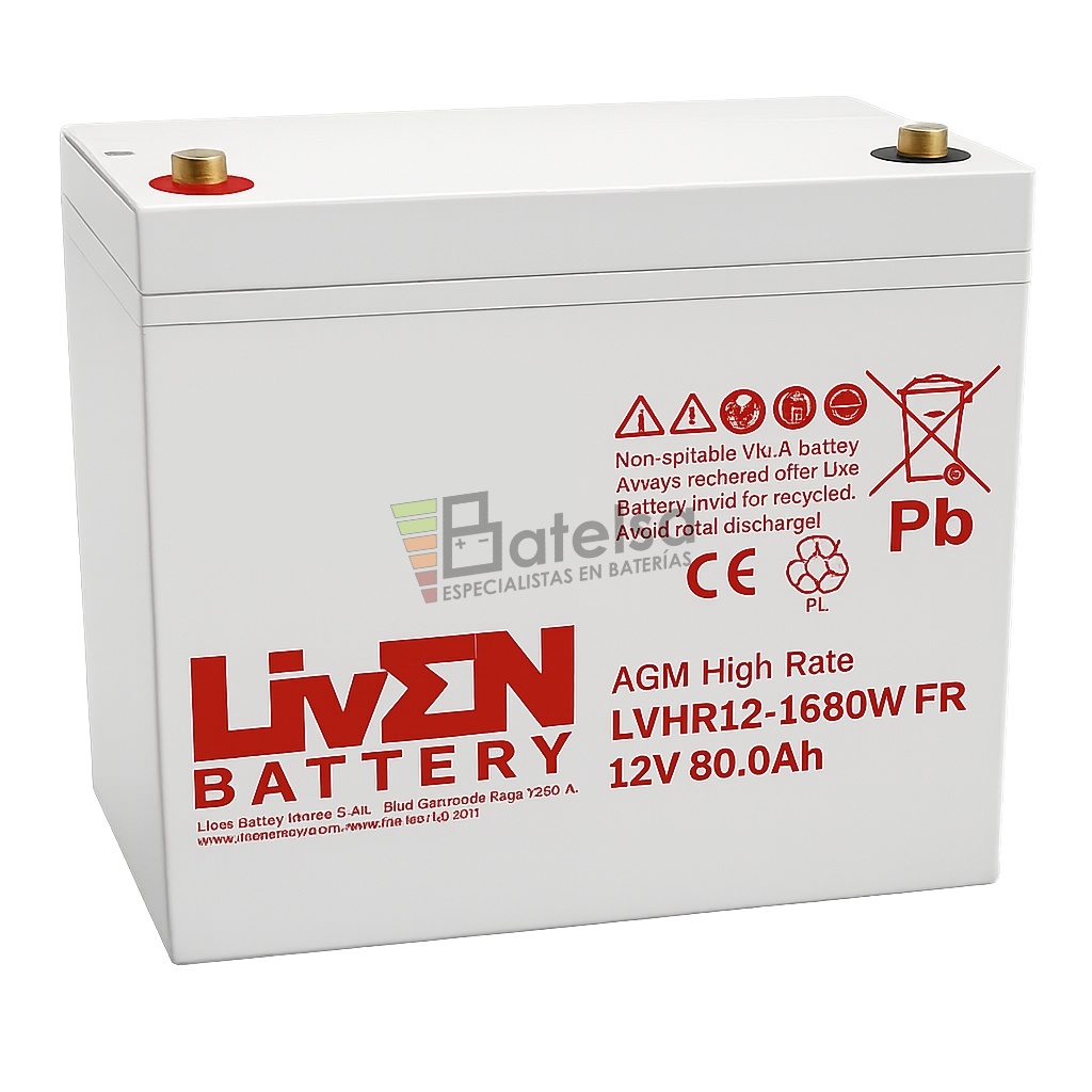 Batería LVHR12-1680W VRLA AGM de Alto Rendimiento, 12 Voltios 80 Amperios – Serie LVHR para Aplicaciones de Alta Descarga