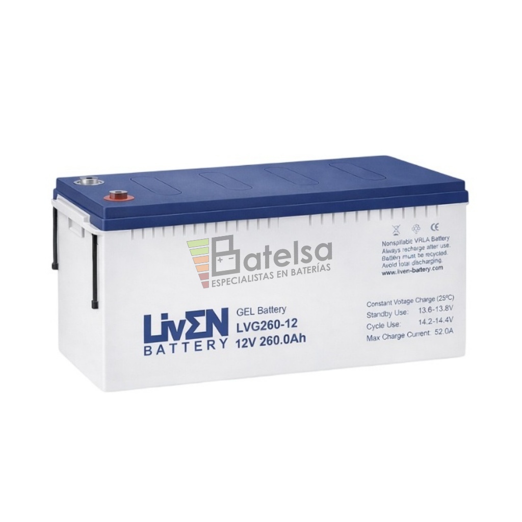 Batería de GEL ciclo profundo LVG260-12 Liven de 12 Voltios 260 Amperios.