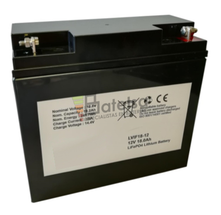 Información | Ventajas baterías LiFePO4 No necesitan ningún tipo de mantenimiento, no precisan rellenar de ningún tipo de electrolito.Son muy seguras y no explotan o se incendian por sobrecargarlas a diferencia de las de litio convencionalSus ciclos de uso pueden oscilar entre 2.000 y 3.000 usos dependiendo de el tanto por ciento de descarga. Si la descargamos al 100% puede darnos hasta 2.000 ciclos de uso pero si las descargas son inferiores estos ciclos aumentan prolongando la vida de la batería.Pueden dejarse a media carga sin peligro de estropear la batería ( a diferencia de las de litio convencional, Plomo AGM o Gel que necesitan ser cargadas de inmediato para poder asegurar el funcionamiento de la batería ).Podemos usarlas hasta los 60ºC o 140ºF sin disminuir su rendimiento.Al no contener liquido, podemos utilizarla en cualquier posición.Tampoco contienen metales tóxicosNo le afectan las vibraciones a diferencia de las baterías convencionales.Por su composición química aceptan cargas rápidas, ideal para bicicletas, scooter, sillas de movilidad, herramientas eléctricas, sistemas de alimentación UPS, alumbrado o sistemas de energía solarAlto rendimiento, completamente libre de mantenimiento, baja descargaUso flotante y en espera: hasta 10 años100% de calidad precisa y estable, altamente seguraVoltaje de salida uniforme y estableProporciona una capacidad de descarga estable, incluso a altas descargas.Densidad de energía: hasta 130Wh / kgCapacidad de densidad: hasta 145Ah / kgAdecuado para almacenamiento de energía gracias a su baja auto-descargaLargo tiempo de almacenamientoCiclos de uso: Hasta 2.000 ciclos descargando al 100%, si la descarga es inferior al 100% aumentamos en ciclos de uso, es decir la batería tiene una esperanza de vida más larga. |