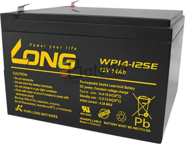 La batería LONG WP14-12SE esta especialmente diseñada para aplicaciones ciclicas, es decir para poder cargar y descargar muchas mas veces que una batería convencional
