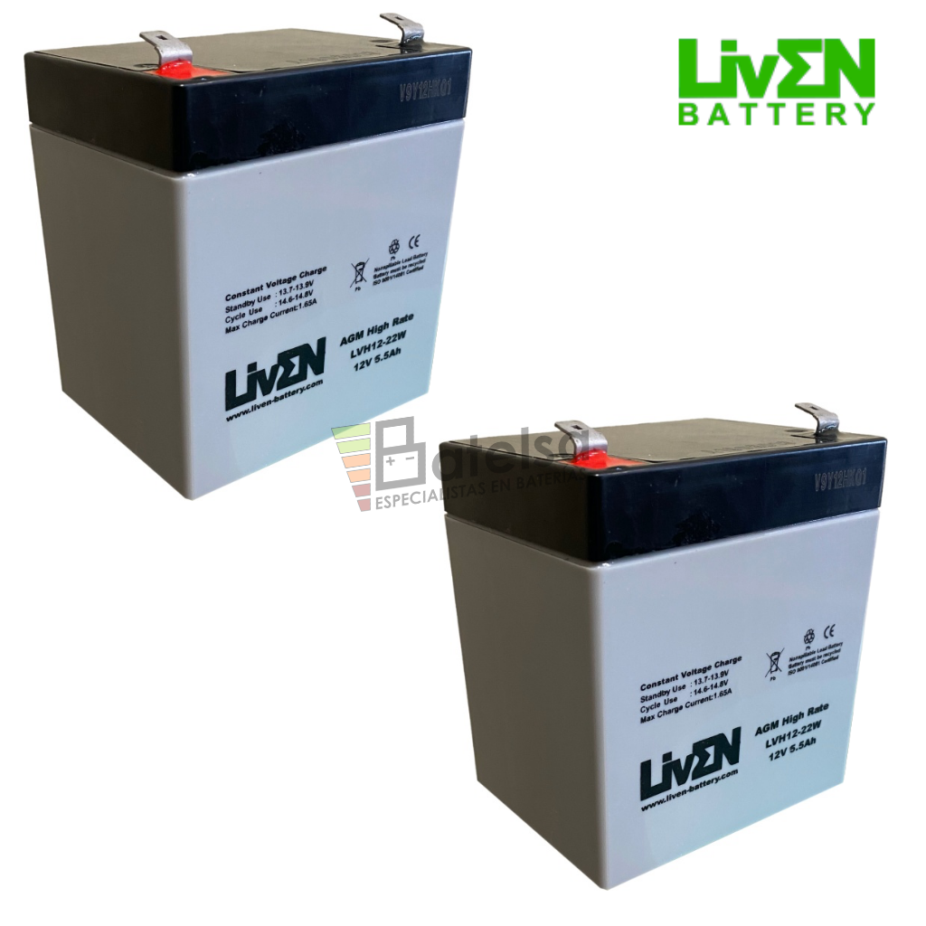 Conjunto de 2 baterías en 12 Voltios y 5,5 Amperios de Potencia Liven Battery LVH1222W especial para Patín eZip EZ3 Nano