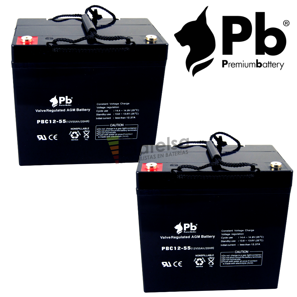 Conjunto de 2 baterías Premium Battery PBCG12-55 12 Voltios 55 Amperios Gel Ciclo Profundo